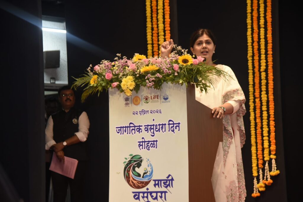 मुंबई : वसुंधरा दिवस के अवसर पर राज्य सरकार के पर्यावरण एवं जलवायु परिवर्तन विभाग द्वारा एक कार्यक्रम का आयोजन किया गया, जिसमें ‘वसुंधरा रक्षक अभियान 2026’ और ‘महा आरपीईटी’ अभियान का शुभारंभ किया गया। इस अवसर पर पर्यावरण मंत्री पंकजा मुंडे ने नागरिकों से पर्यावरण संरक्षण के लिए सक्रिय भूमिका निभाने और ‘वसुंधरा रक्षक’ बनने की अपील की।
